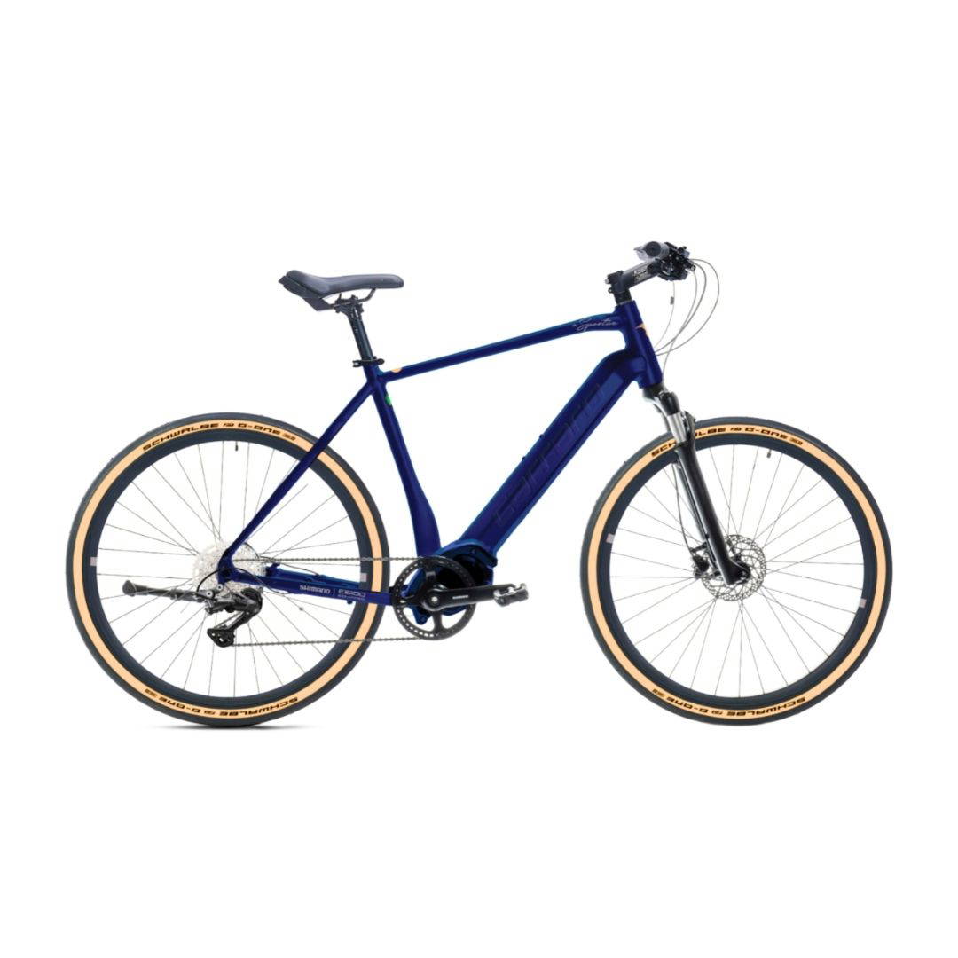 Carraro E-sportive X - 28 Jant 22'' 56cm ( L - Xl ) Kadro Hd Elektrikli Trekking Bisiklet - Lacivert / Açık Turuncu Gümüş