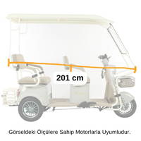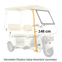 STMAX Elit Retro ve benzeri üç tekerlekli elektrikli motosikletleriniz için özel olarak tasarlanan bu tente sistemi, sürüş keyfinizi her mevsim en üst seviyeye taşır. Estetik tasarımı ve sağlam metal iskeleti ile aracınıza tam uyum sağlar.