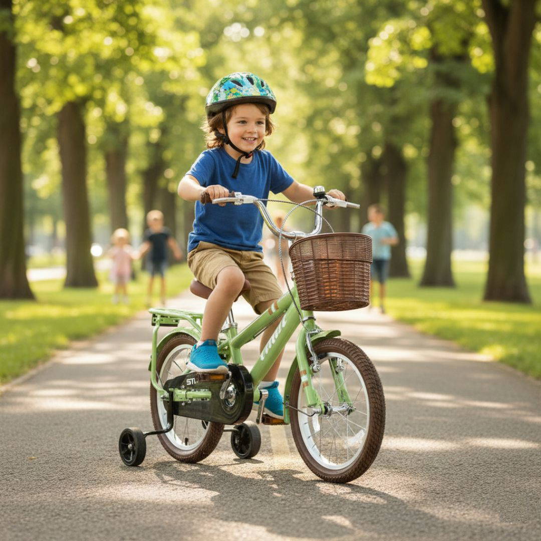 Okul çağı öncesi çocuklar için harika bir bisiklet modeli. Sade tasarım, boyuna uygun ayarlanabilir sele ve direksiyon, düz kadro açısı, bisiklete alışma sürecinde güvenli kullanım için yan destek tekerleri, zincir koruma ekipmanları, çamurluk ve bagajı ile çocukların ilk bisiklet tecrübesi edinmesine güvenle yardımcı olur.
