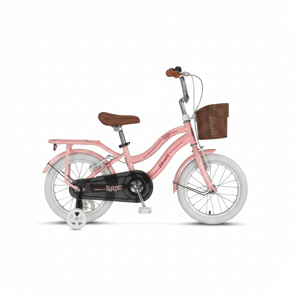 Çocuğunuzun bisiklet sürme serüvenine mükemmel bir başlangıç yapması için tasarlanmış Ümit Stitch New L Atb 16 Jant Sepetli Çocuk Bisikleti, pembe rengi ve sevimli tasarımıyla her küçük kaşifin hayalini süslüyor.